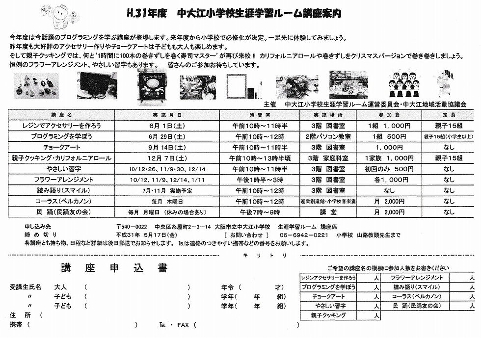 H.31年度 中大江小学校生涯学習ルーム講座案内